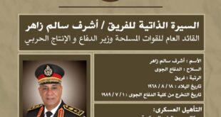 نشر المتحدث الرسمى باسم القوات المسلحة المصرية ،السيرة الذاتية للفريق أحمد سالم زاهر وزير الدفاع والإنتاج الحربي الجديد